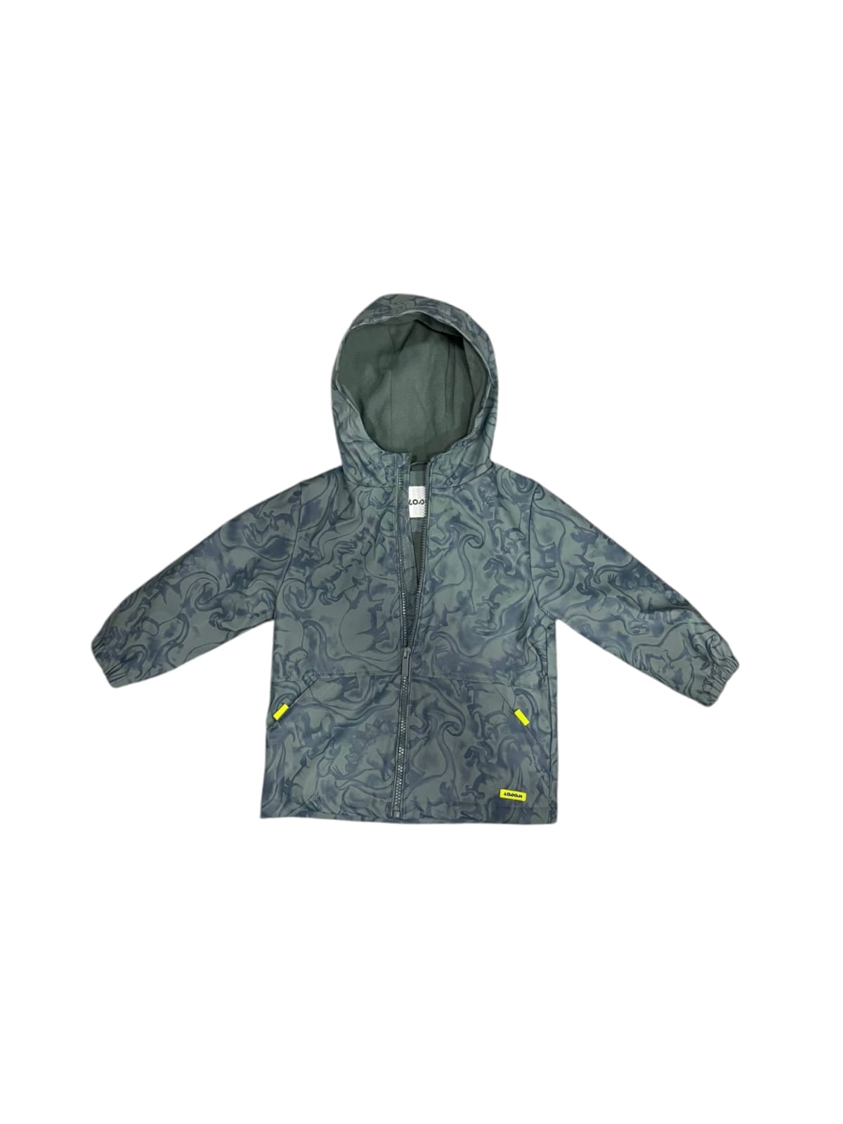 Casaco em tecido hidrorrepelente com um padrão de Dinossauros em tons neutros. O forro em lã dá um toque especial a esta peça! Pormenor dos bolsos na frente e capuz!