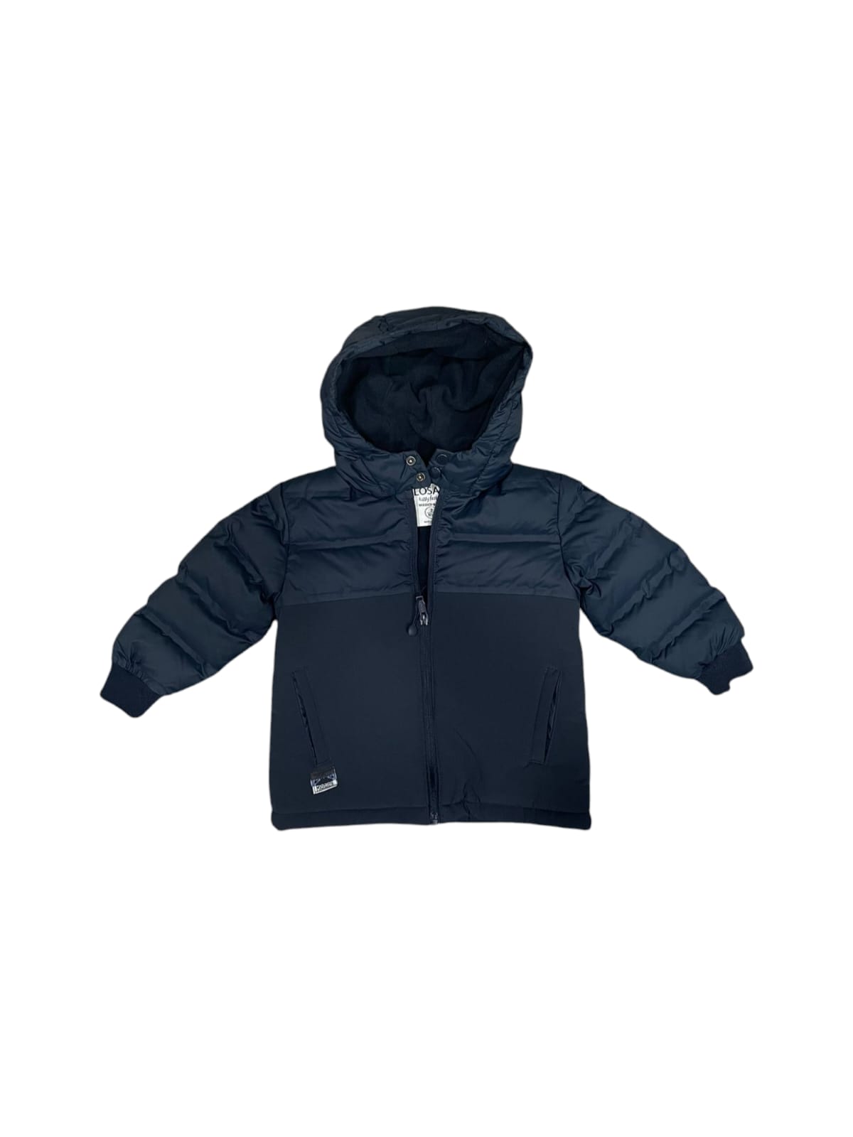 Waterproof padded jacket for boys. With hood, semi-high collar and fleece lining for greater thermal comfort. Side pockets, ribbed cuffs and slightly elasticated base for a perfect fit. Easily fastens with a zip. Label on the inside for the child's identification. A warm and comfortable jacket to protect children from the cold and rain.