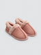 Chinelos femininos com acabamento em pele